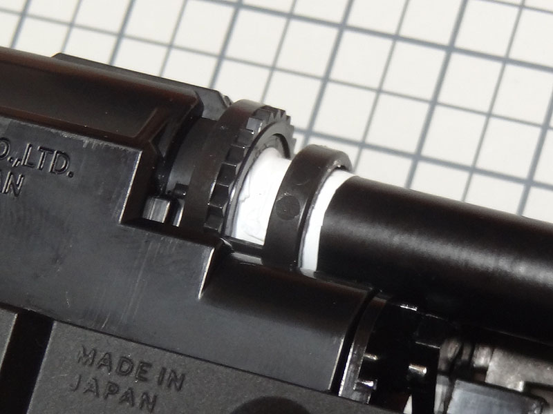 チャンバーブロックで引っかかる関係上、気密アップの定番であるインナーバレルとパッキンをシールテープで一緒に巻く方法が出来ません。
